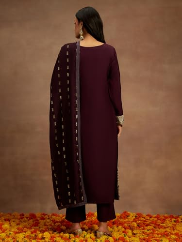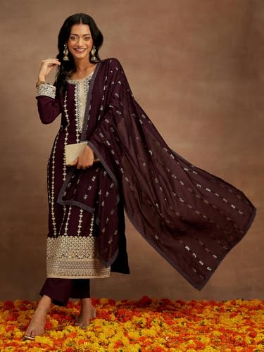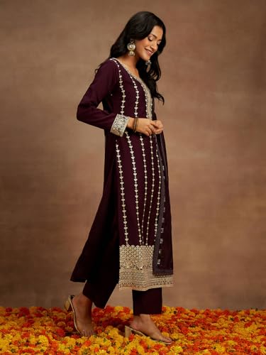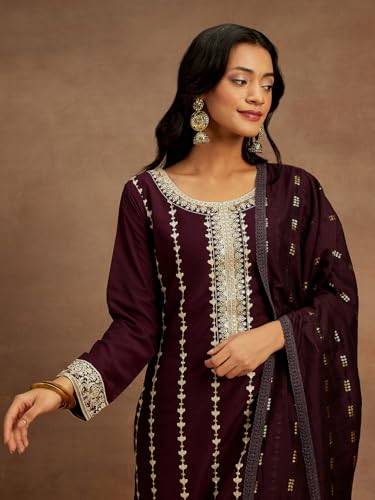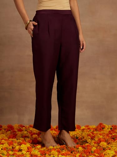 Janasya Women's Maroon Silk Blend Foil Printed A-Line Kurta Set