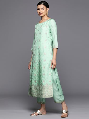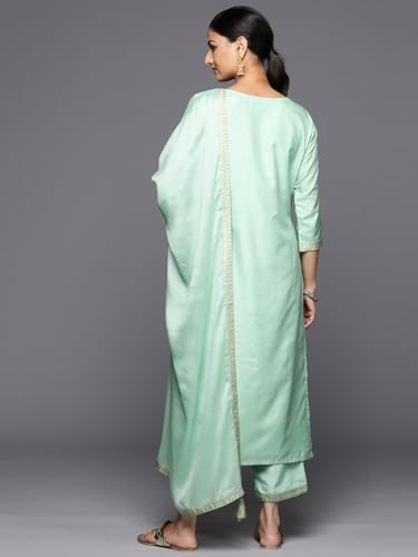 INDO ERA Women's Viscose Embroidered A-Line Kurta with Pant & Dupatta (Kh1Pk9622)