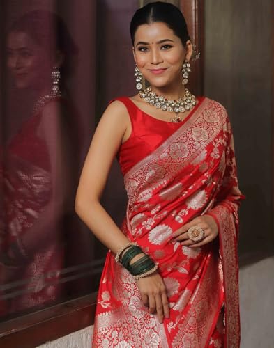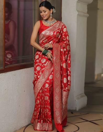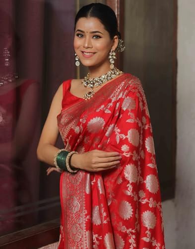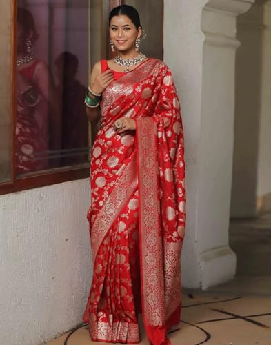 SWORNOF Women's Pure Silk Saree With Blouse Piece