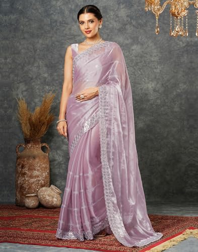 Sidhidata Women's Organza Golden Zari Jacquard Boarder & Pallu ZigZag Saree With Unstitched Blouse Piece (Maharani)