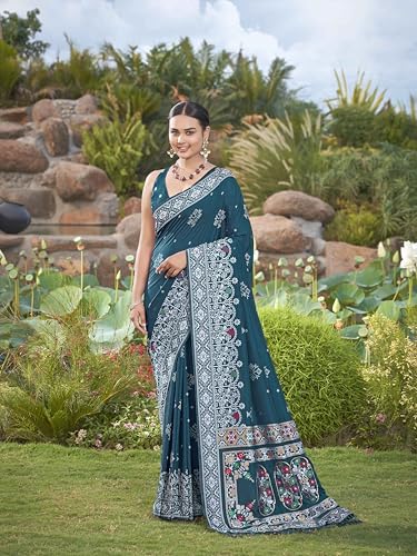 SIRIL Women's Paithani Jacquard Silk Blend Saree with Unstitched Blouse Piece