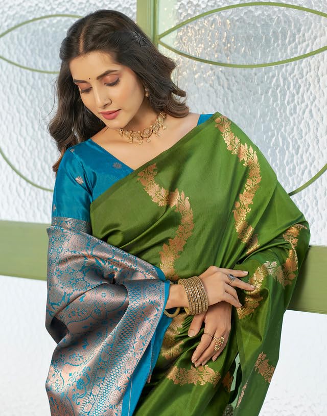 SIRIL Women's Printed Cotton Saree with Unstitched Blouse Piece