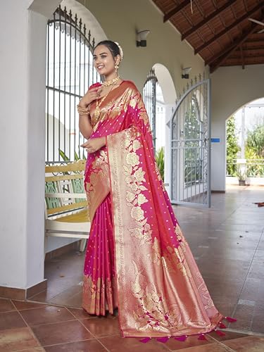 SWORNOF Women's kanjivaram banarasi silk saree for Patola festival Wedding silk with rich pallu Design sarees for women with blouse piece