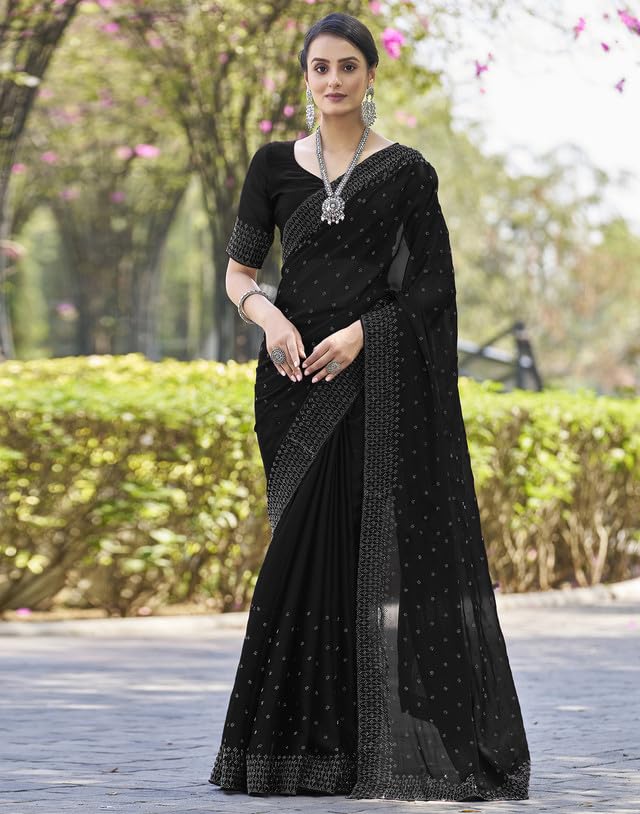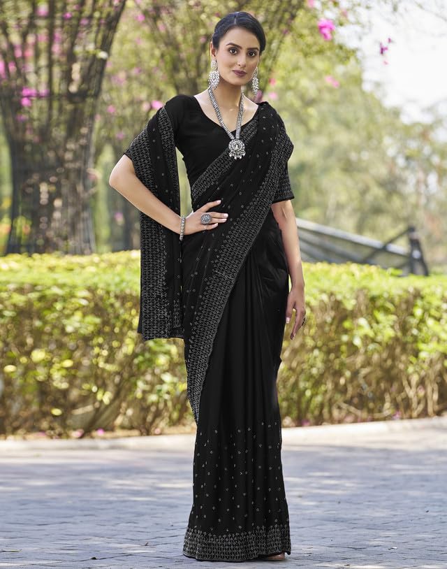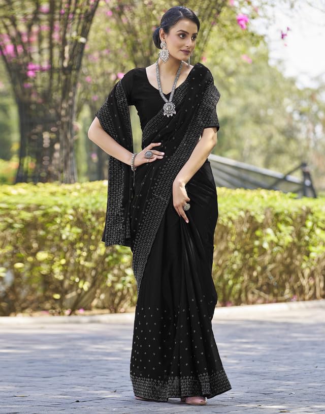 SIRIL Women's Silk Blend Jacquard Woven Saree With Unstitched Blouse Piece