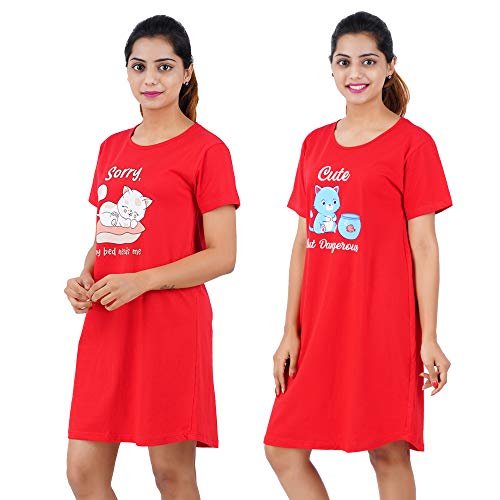 Buy That Trendz Women's Cotton Printed Top and All Over Print Pyjama Set/Pajama Night Suit Set/Sleep wear Set/Loungewear Set Live Rust Cool Cat Navy Combo Pack of 2