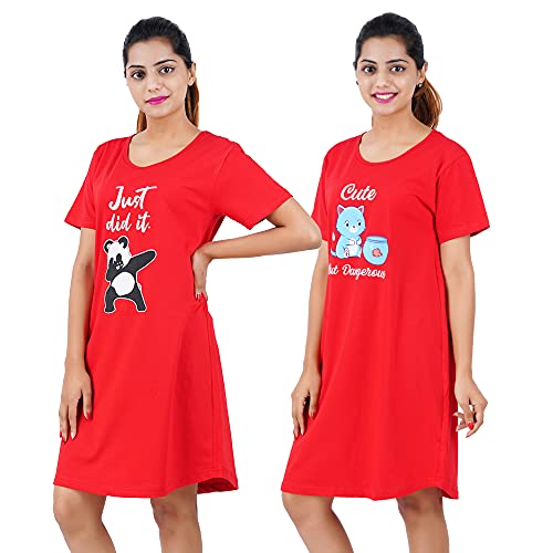 Buy That Trendz Women's Cotton Printed Top and All Over Print Capri Pyjama Set/Pajama Night Suit Set/Sleep wear Set/Loungewear Set Dreams Red Different Tomato Red Combo Pack of 2