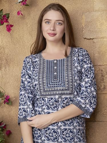 NIHSAMAH Cotton Nighty for Women — Printed Stylish Night Gown, Comfortable Sleepwear Long Nightwear, Maxi
