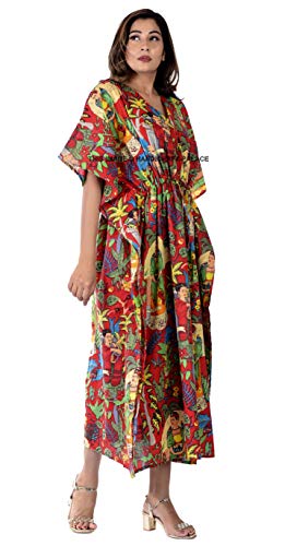 RILO Women's Printed Hosiery Cotton Full Sleeve Nighty Nightgown Maxi with Pocket