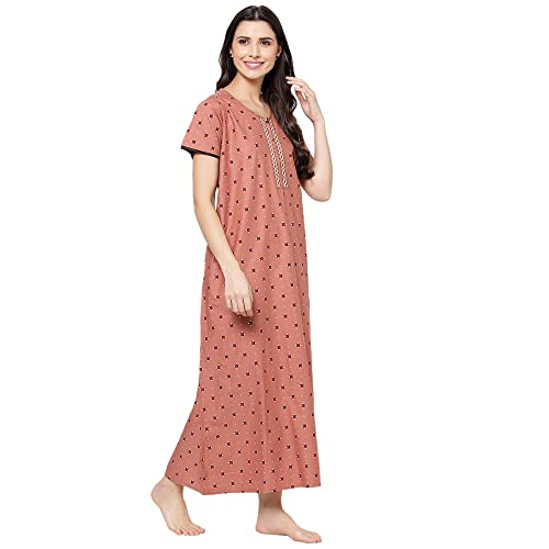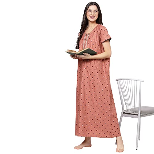 Evolove Women's Cotton Long Maxi Night Gown Nighty Dress with Pocket, Super Soft Comfortable (LNG-Cotton-2)