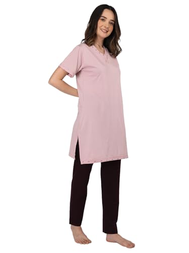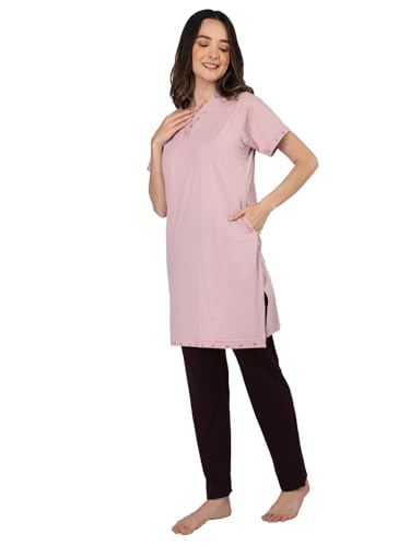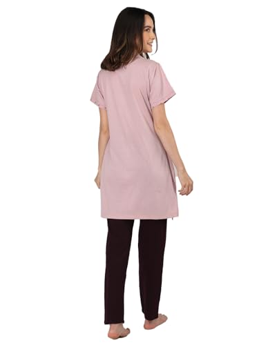 Evolove Women's Cotton Round Neck Short SleevesNight Suit Set/Top Pyjama Set Super Soft Comfortable (Nightsuit-Round-HS-4)