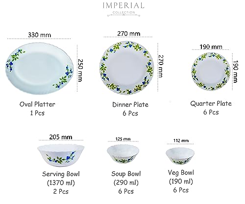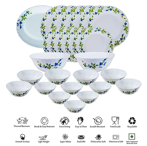 Larah by BOROSIL Universe Opalware Dinner Set, 27-Pieces, White