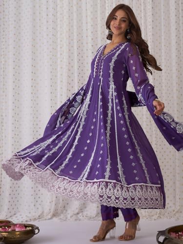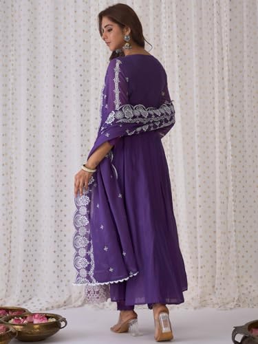 Miss Ethnik Women's Pink Vichitra Silk Stitched Top With Stitched Vichitra Silk Bottom and Vichitra silk Dupatta Full Sleeve Embroidered Straight Kurta (ME-1157)