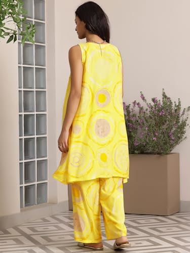 Libas Blue Yoke Design Cotton Anarkali Kurta With Trousers & Dupatta
