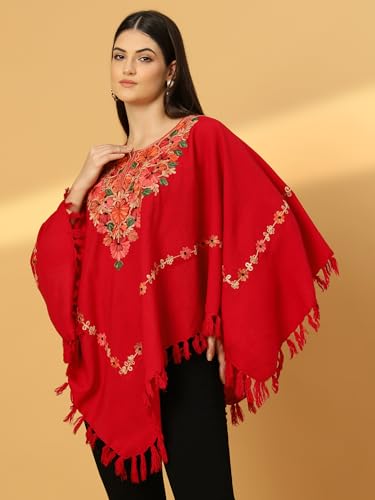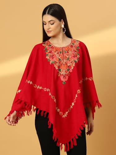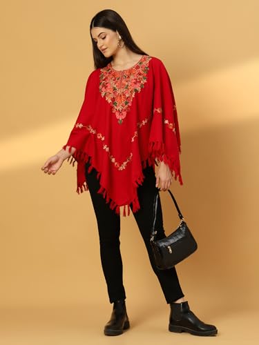 TeeMoods Women's Cotton Jacket Poncho with 3/4th Sleeves, Red Melange, M