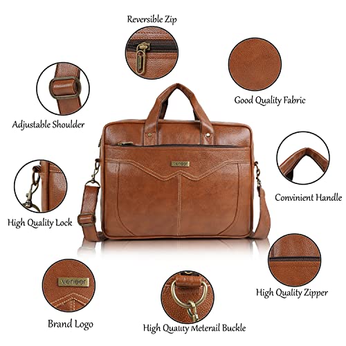 Red Cherry Genuine Leather Business Briefcase Office Bag for Men with 15.6 Inches Laptop Compartment